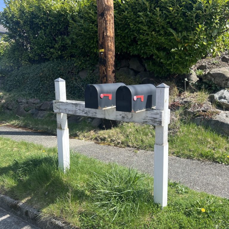 The existing two (2) unsecured mailboxes were on an old post-and-beam with no cover. This project used the existing posts to create a covered platform and installed three (3) new, secured mailboxes.